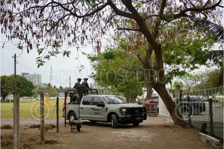 BOCA DEL RÍO, VERACRUZ., 20MARZO2024.- Elementos de la Secretaría de Marina y agentes de la Fiscalía General de la República, adscritos a la Agencia de Investigación Criminal, habrían aseguraron un autotanque tipo pipa y un tractocamión, al interior de la Unión Regional Ganadera de Veracruz, así como presuntamente una cantidad importante de combustible que era almacenado en bidones y resguardados en una bodega. Hasta el momento las autoridades federales no han informado del posible decomiso, sin embargo, se mantienen resguardando el lugar, a unos metros de las instalaciones de Petroleos Mexicanos en este municipio. FOTO: FÉLIX MÁRQUEZ / CUARTOSCURO.COM