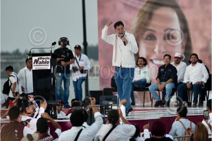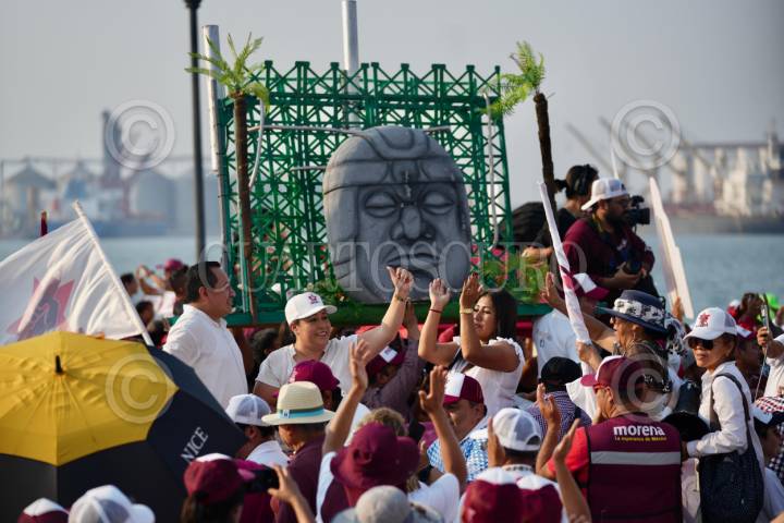 VERACRUZ, VERACRUZ., 31MARZO2024.- La candidata a la gubernatura de Veracruz, Rocío Nahle, por la coalición integrada por los partidos Morena, Partido del Trabajo, Partido Verde y Fuerza x Mexico, arrancó campaña en el Malecón del Puerto de Veracruz, en compañía de Gerardo Fernández Noroña. FOTO: FÉLIX MÁRQUEZ/ CUARTOSCURO.COM