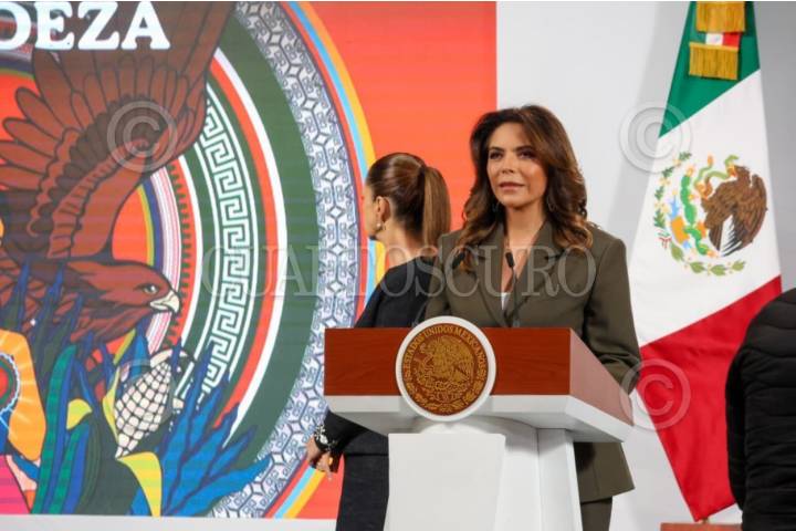 CIUDAD DE MÉXICO, 19SEPTIEMBRE2025.- Olivia Salomón, Directora General de Lotería Nacional, participó durante la conferencia “Mañanera del Pueblo” de la presidenta Claudia Sheinbaum para dar detalles del boleto y sorteo dedicado a los hermanos migrantes bajo el lema “México con M de Migrante”. FOTO: LOTERÍA NACIONAL/CUARTOSCURO.COM
