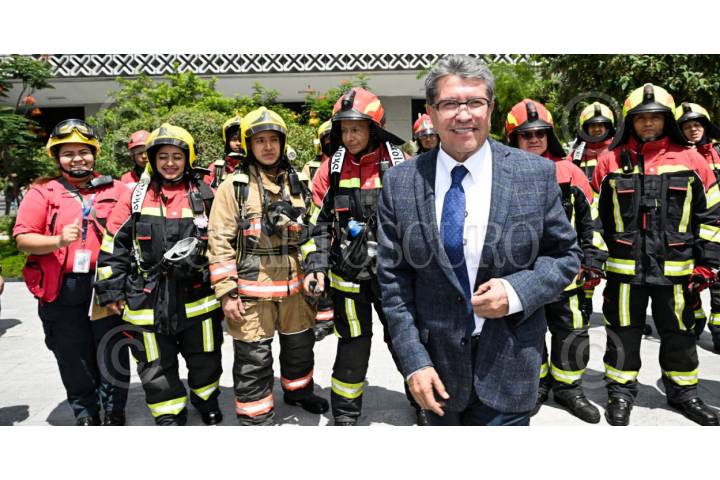 CIUDAD DE MÉXICO. 19SEPTIEMBRE2025.- Ricardo Monreal Ávila, coordinador de Morena junto con la presidenta de la mesa directiva de la cámara baja, Kenia López Rabadán;durante el simulacro de Sismo en el recinto de San Lázaro. FOTO: CUARTOSCURO.COM