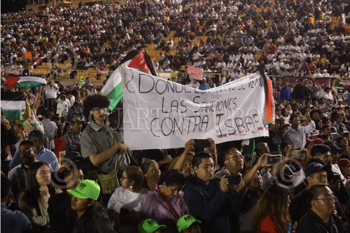 OAXACA, OAXACA, 19SEPTIEMBRE2025.- Activistas pro Palestina se manifestaron durante el informe de la presidenta de la República Claudia Sheinbaum Pardo en Oaxaca de cara a su primer año de gobierno. FOTO: CAROLINA JIMÉNEZ MARISCAL/CUARTOSCURO.COM