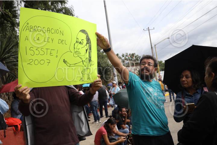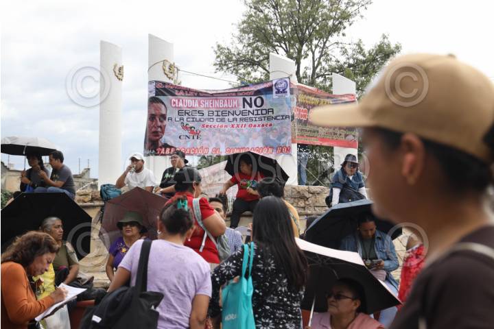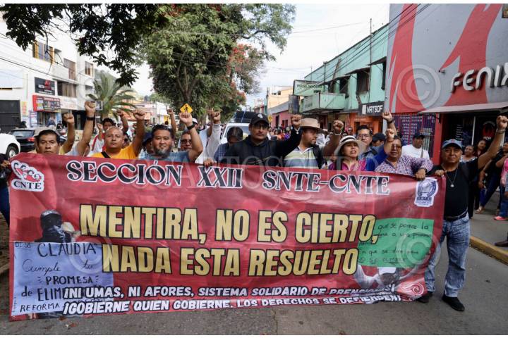 OAXACA, OAXACA, 19SEPTIEMBRE2025.- Integrantes de la Sección 22 de la Coordinadora Nacional de Trabajadores de la Educación (CNTE) se manifestaron por la visita de la presidenta Claudia Sheinbaum Pardo a Oaxaca. Los profesores marcharon a inmediaciones del estadio de fútbol del Instituto Tecnológico (ITO) en donde se realizaría el acto presidencial, para reclamar la abrogación de la Ley del ISSSTE y otros derechos laborales. FOTO: CAROLINA JIMÉNEZ MARISCAL/CUARTOSCURO.COM