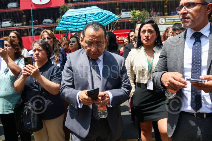CIUDAD DE MÉXICO. 19SEPTIEMBRE2025.- Trabajadores del poder judicial de la Ciudad de México; en el Simulacro nacional de sismo este día y que se llevó acabó en los tribunales. FOTO: VICTORIA VALTIERRA/CUARTOSCURO.COM