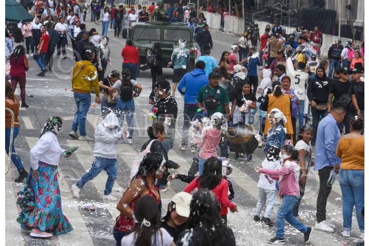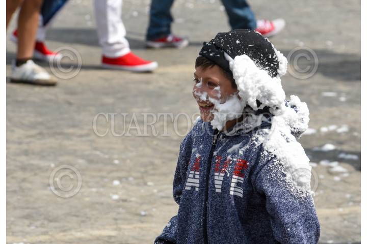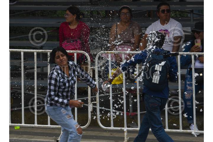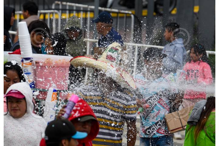TOLUCA, ESTADO DE MÉXICO, 16SEPTIEMBRE2024.- Al término del Desfile Cívico Militar por el 214 Aniversario de la Independencia de México desató una guerra de espuma entre los asistentes. FOTO: CRISANTA ESPINOSA AGUILAR /CUARTOSCURO.COM