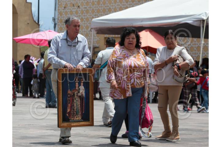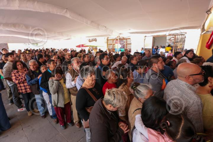 TOLUCA, ESTADO DE MÉXICO, 16JULIO2025.- Devotos de la Virgen del Carmen acudieron a la Iglesia del Carmen en la ciudad de Toluca a misa por la celebración, llevando consigo imágenes y escapularios para ser bendecidos. FOTO: CRISANTA ESPINOSA AGUILAR /CUARTOSCURO.COM