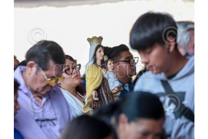 TOLUCA, ESTADO DE MÉXICO, 16JULIO2025.- Devotos de la Virgen del Carmen con imágenes de la Virgen acudieron a la Iglesia del Carmen en la ciudad de Toluca a misa por la celebración de la virgen. FOTO: CRISANTA ESPINOSA AGUILAR /CUARTOSCURO.COM