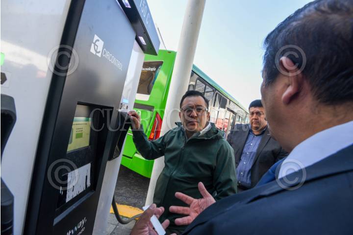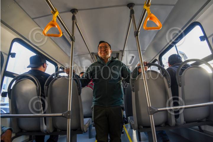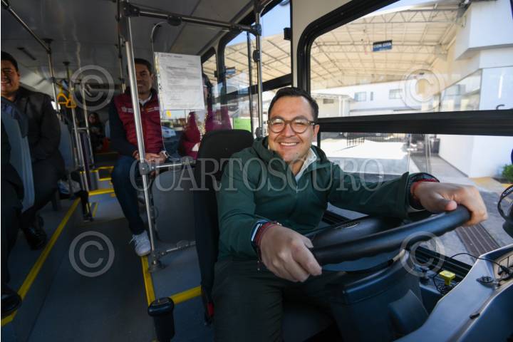 OCOYOACAC, ESTADO DE MÉXICO, 07ABRIL2025.- Daniel Sibaja Secretario de Movilidad del Estado de México encabezó las pruebas de “Taruk”, el primer autobús 100 por ciento mexicano, de las empresas MegaFlux y DINA, las pruebas durarán mes y medio y se espera que pronto sean más unidades las que estén recorriendo la entidad mexiquense. FOTO: CRISANTA ESPINOSA AGUILAR /CUARTOSCURO.COM