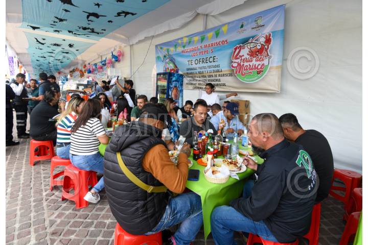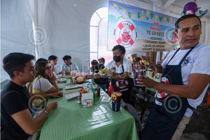ZINACANTEPEC, ESTADO DE MÉXICO, 22AGOSTO2025.- Asistente a la inauguración de la 12 Feria del Marisco en Zinacantepec disfrutaron de una gran variedad de platillos elaborados a base de mariscos que ofrecen más de 40 expositores. FOTO: CRISANTA ESPINOSA AGUILAR/CUARTOSCURO.COM