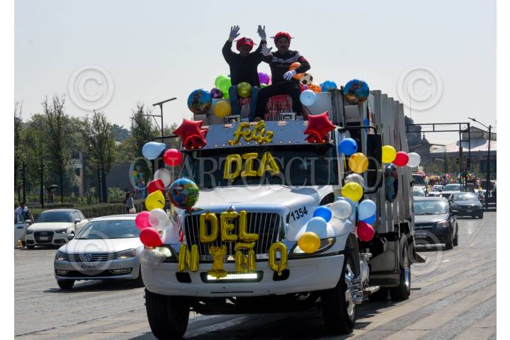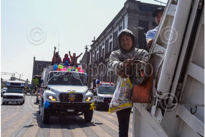 TOLUCA, ESTADO DE MÉXICO, 30ABRIL2025.- Trabajadores de limpieza y Servicios Públicos de Toluca recorrieron las calles de la capital mexiquense en sus camiones recolectores de basura Adornados con globos y diversos motivos en el marco de la celebración del Día del Niño, regalaron dulces y pelotitas, cada año salen a realizar este recorrido y con recursos propios se organizan para dar un presente a los pequeños. FOTO: CRISANTA ESPINOSA AGUILAR/CUARTOSCURO.COM