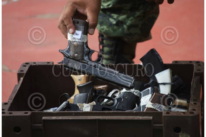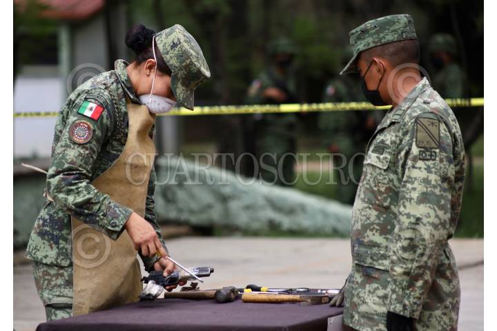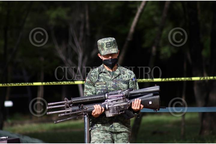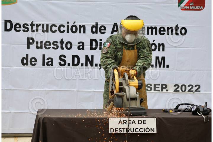 Fueron destruidas 307 armas largas y cortas como parte del programa de Control, Destrucción y Aprovechamiento Lícito de las Armas de Fuego Decomisadas, Recicladas por Intercambio Voluntario, y Causantes de Baja de Licencias Oficiales de la Sedena.