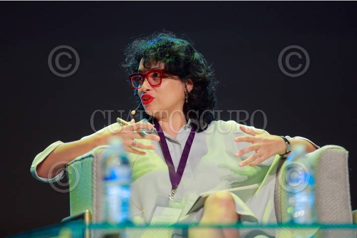 Lorena Wolffer durante su participación en el Hay Festival Querétaro.