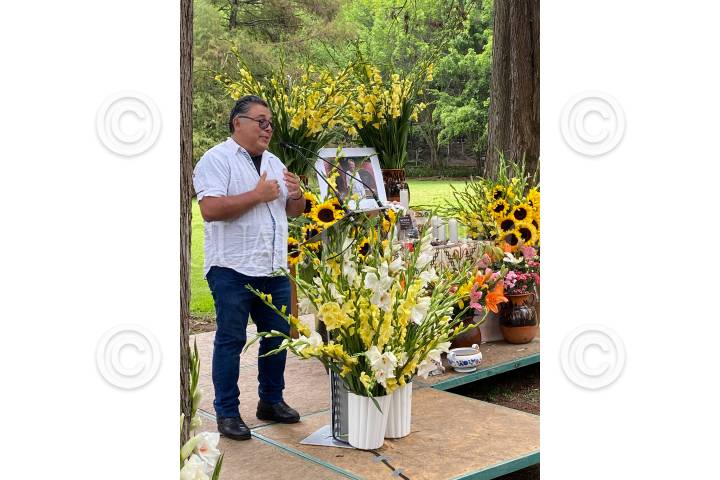 Investigadores y conocedores de la obra de la escritora de gastronomía mexicana, Diana Kennedy, quien falleciera el pasado 24 de julio, dirigieron palabras a sus amigos reunidos para esparcir sus cenizas en la quinta en la que vivió los últimos 45 años. En la foto el especialista en maíces criollos, Amado Ramírez Leyva.