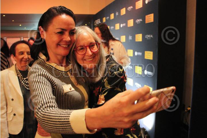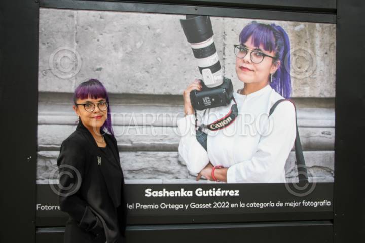 La fotoperiodista Sashenka Gutiérrez durante la inauguración “Mujeres que mueven México” realizada en Avenida Reforma