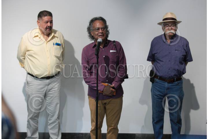 Pedro Valtierra, Director de Cuartoscuro, acompañado del Subdirector del Instituto Sudcaliforniano de Cultura, José Ángel García Borrego y del fotógrafo Aníbal Angulo, inauguró la muestra fotográfica