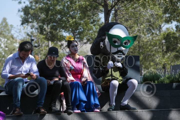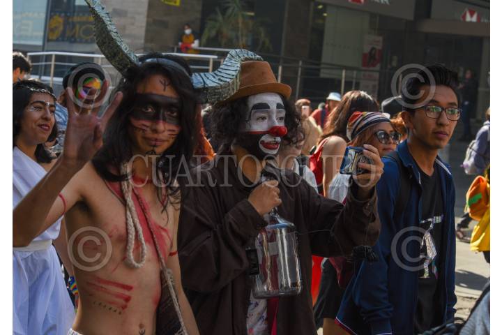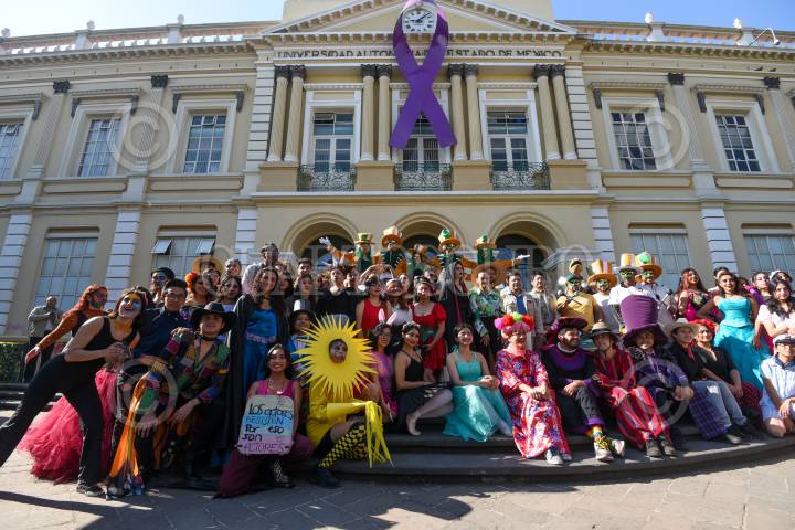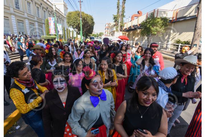 Estudiantes y actores de la UAEMÉX realizaron un desfile por las calles de Toluca en el marco del Día Mundial del Teatro invitando a la población a los diferentes espacios universitarios en donde se realizan varias obras de teatro.