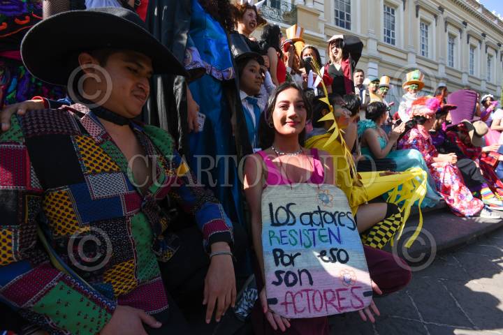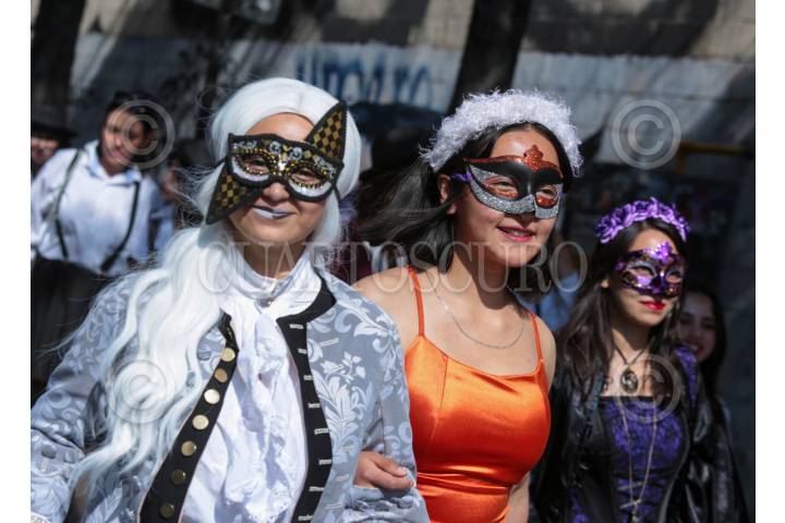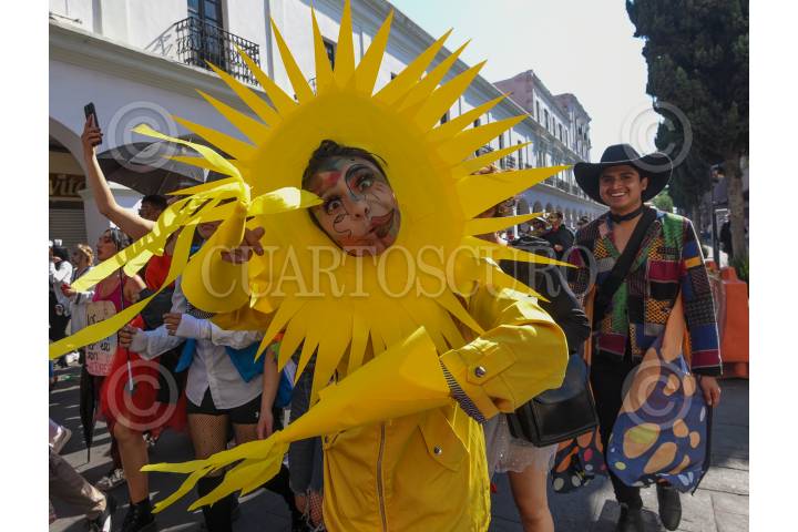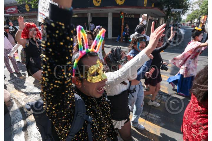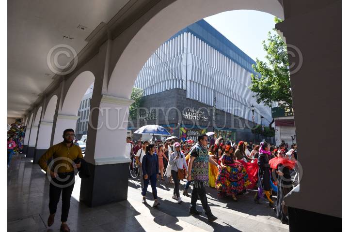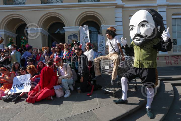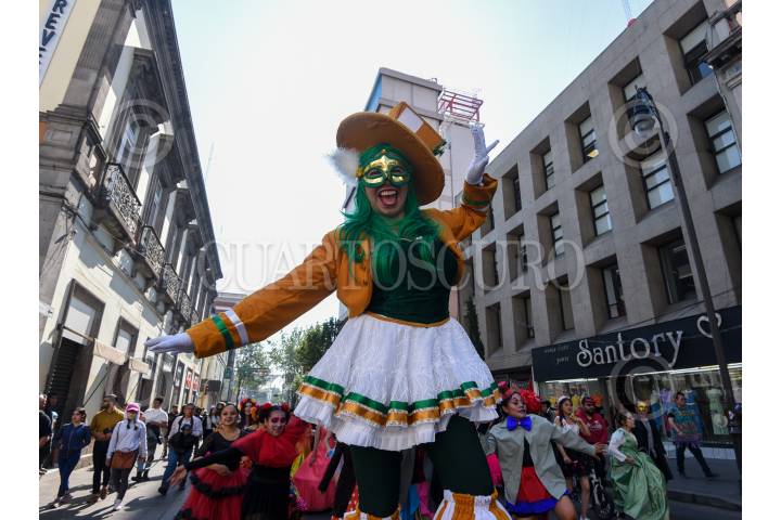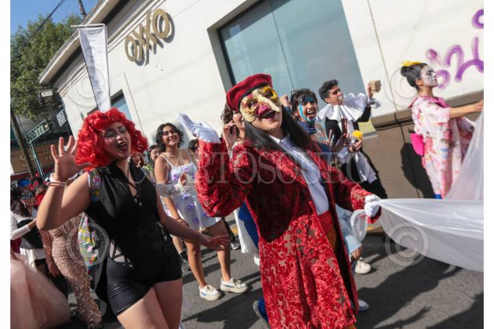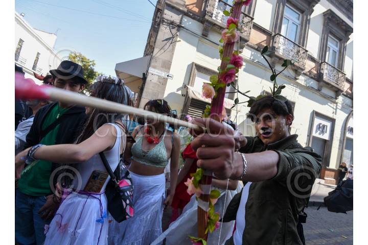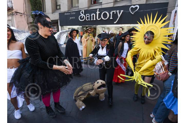 TOLUCA, ESTADO DE MÉXICO, 27MARZO2025.- En el marco del Día Mundial del Teatro integrantes de la Compañía Universitaria de Teatro UAEMÉX, estudiantes de las licenciaturas de Artes Teatrales de la Facultad de Humanidades y la Escuela de Bellas Artes de Toluca realizaron un desfile en la ciudad de Toluca invitando a la población a acercarse a los diferentes espacios en donde se presentas de obras para todas las edades. FOTO: CRISANTA ESPINOSA AGUILAR /CUARTOSCURO.COM