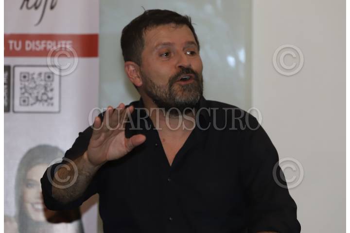 El actor colombiano Julio César Herrera durante la conferencia de prensa de la obra de teatro “El diván rojo”.