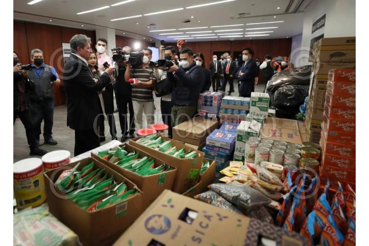 Luis Cresencio Sandoval, secretario de la Defensa Nacional; Rosa Icela Rodríguez, secretaria de Seguridad y Protección Ciudadana; Alejandro Murat, gobernador de Oaxaca, y Adán Augusto López, secretario de Gobernación, encabezaron la entrega de bienes en el Tianguis del Bienestar instalado en San Pedro Pochutla a las familias afectadas por el huracán Agatha.