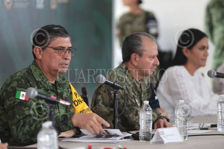 José Rafael Ojeda Durán, secretario de Marina, durante la presentación del Plan de Apoyo a las personas afectadas por el Huracán Agatha en Oaxaca.