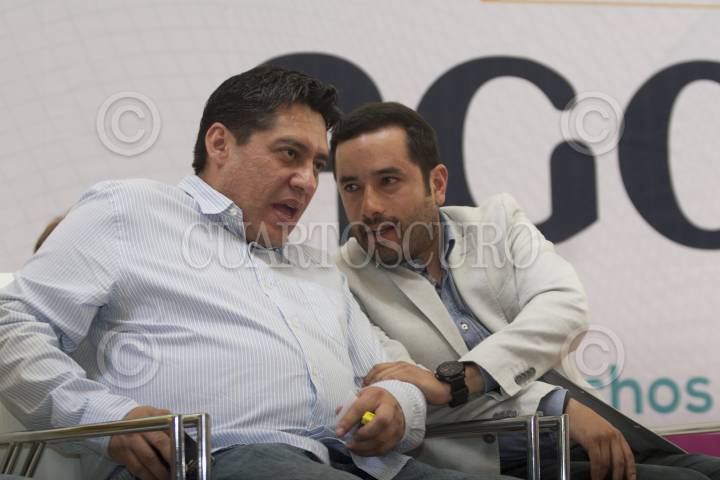 MÉXICO, D.F., 07ABRIL2013.- El Presidente de la Comisión de Derechos Humanos del D.F., Luis Armando González Plascencia, dialoga con el Jefe Delegacional d ela Miguel Hidalgo, Víctor Hugo Romo momentos antes de presentar el programa ciudadano impulsado por la Delegación Miguel Hidalgo, AGORA, que busca implementar mesas de trabajo para acercar a la población al tema de los derechos humanos y escuchar las necesidades de las colonias de toda la demarcación. FOTO: FRANCISCO RODRÍGUEZ /CUARTOSCURO.COM
