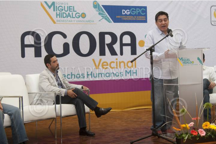 MÉXICO, D.F., 07ABRIL2013.- El Presidente de la Comisión de Derechos Humanos del D.F., Luis Armando González Plascencia y Jefe Delegacional d ela Miguel Hidalgo, Víctor Hugo Romo, durante la presentación del programa ciudadano impulsado por la Delegación Miguel Hidalgo, AGORA, que busca implementar mesas de trabajo para acercar a la población al tema de los derechos humanos y escuchar las necesidades de las colonias de toda la demarcación. FOTO: FRANCISCO RODRÍGUEZ /CUARTOSCURO.COM