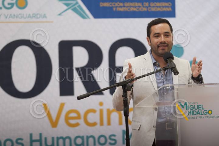 MÉXICO, D.F., 07ABRIL2013.- El Jefe Delegacional de Miguel Hidalgo, Víctor Hugo Romo, durante la presentación del programa ciudadano impulsado por la Delegación Miguel Hidalgo, AGORA, que busca implementar mesas de trabajo para acercar a la población al tema de los derechos humanos y escuchar las necesidades de las colonias de toda la demarcación. FOTO: FRANCISCO RODRÍGUEZ /CUARTOSCURO.COM
