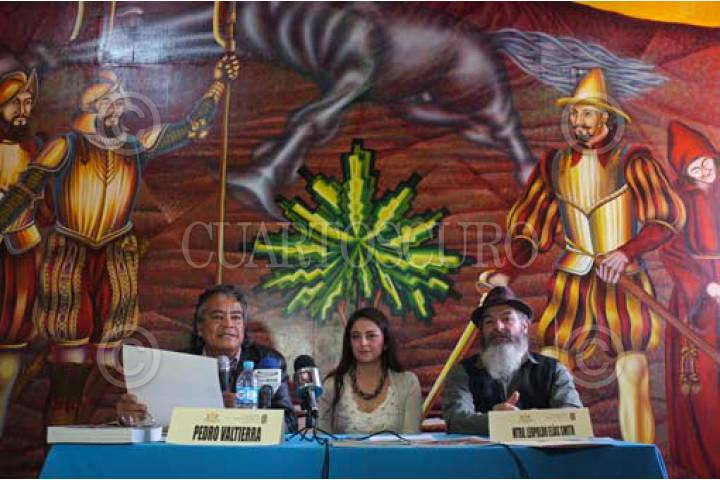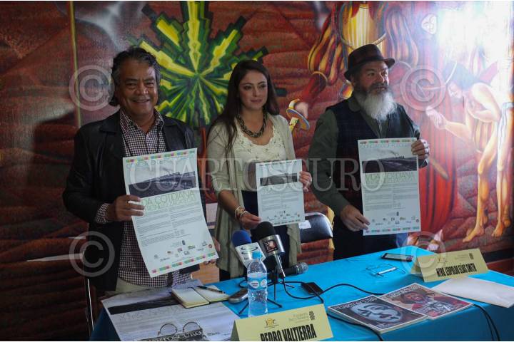 FRESNILLO, ZACATECAS, 21NOVIEMBRE2015.- En la Sala Luis G Ledesma, del Ágora de José González Echeverría, el fotógrafo Pedro Valtierra, junto al director del Instituto Municipal Fresnillense para la Cultura, Leopoldo Elías Smith Mac Donald, y la subdirectora de cultura, Christian Tonantzin Jiménez, hicieron la presentación del Concurso; “Vida Cotidiana de Fresnillo”. El Fundador de la Agencia y Revista Cuartoscuro, Pedro Valtierra indicó que la finalidad de realizar el concurso es para estimular a los fotógrafos no sólo por el premio económico, sino también para recuperar la memoria actual de Fresnillo, la vida cotidiana en todos sus aspectos. FOTO: CARLOS SEGURA /CUARTOSCURO.COM