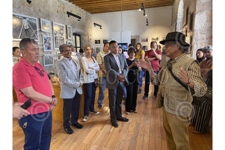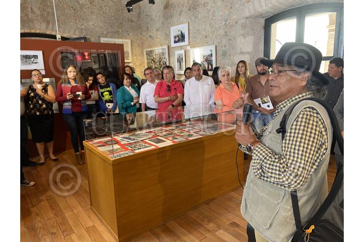Dentro de las actividades del Festival Cultural Fresnillo 2023, el fotoperiodista fresnillense Pedro Valtierra ofreció una charla respecto a su trayectoria profesional. Esto en la Sala Redonda del Centro Turístico y Cultural Ágora “José González Echeverría”. Después, realizó con el público un recorrido explicando parte de sus fotografías y archivo en la Sala Pedro Valtierra del mismo recinto.