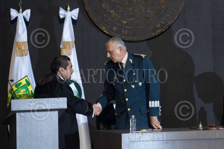 CIUDAD DE MÉXICO, 05SEPTIEMBRE2018.- Álvaro Pérez Juárez, Magistrado presidente del Tribunal Superior de Justicia de la Ciudad de México (TSJCDMX) y Salvador Cienfuegos Zepeda, secretario de la Defensa Nacional, se saludan durante la primera sesión en la nueva sede del TSJCDMX en la calle de Niños Héroes de la colonia Doctores. FOTO: MISAEL VALTIERRA /CUARTOSCURO.COM