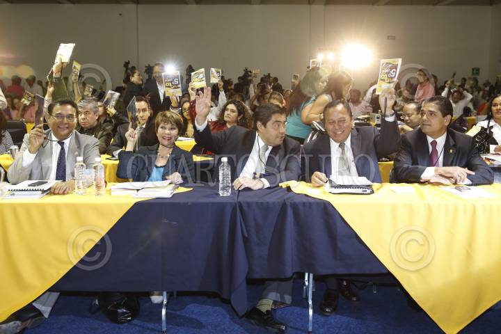 MÉXICO, D.F., 09AGOSTO2013.- Ángel Benjamín Robles, senador, Angélica Peña, senadora, Miguel Barbosa, coordinador de los senadores del PRD, Jesús Zambrano, líder del PRD y Silvano Aureoles Conejo, coordinador de los diputados del PRD, durante una votación en el 5o Consejo Nacional del PRD. FOTO: CUARTOSCURO.COM