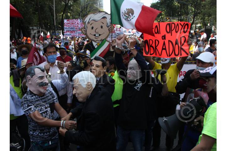 Distintos asistentes a la Marcha del Millón se colocaron máscaras del presidente y expresidentes de México.