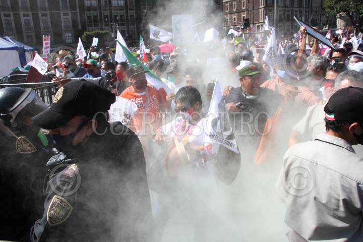 Encuentro entre la Mmarcha del Millón y plantón de FRENAAA en el Zócalo. FOTO: ROGELIO MORALES /CUARTOSCURO.COM