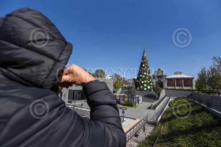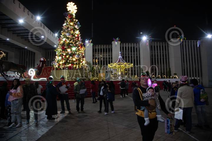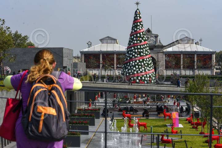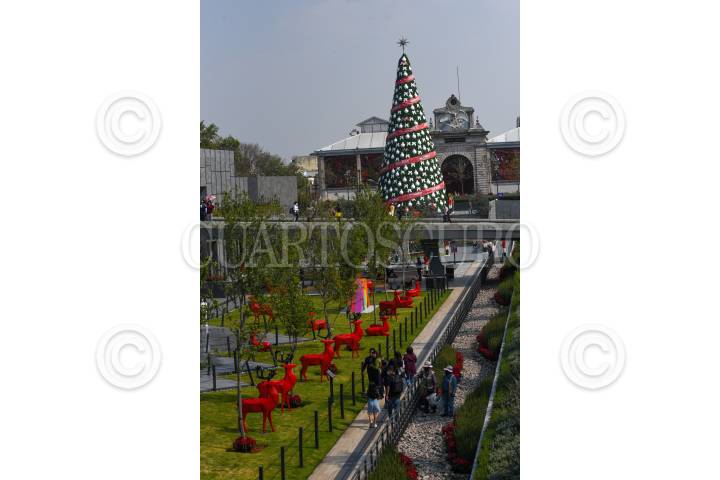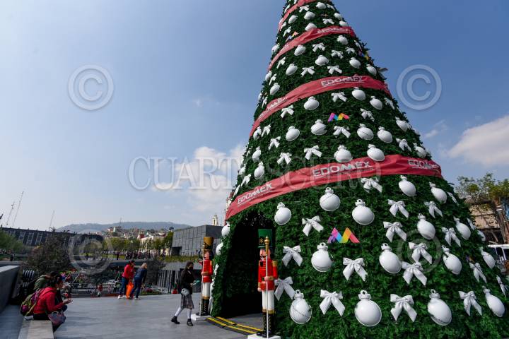 TOLUCA, ESTADO DE MÉXICO, 18DICIEMBRE2023.- Instalan árbol de Navidad en el Parque de la Ciencia Fundadores en Toluca, los adornos aún son escasos en la capital mexiquense, algunos ciudadanos toman la foto durante esta época. FOTO: CRISANTA ESPINOSA AGUILAR /CUARTOSCURO.COM