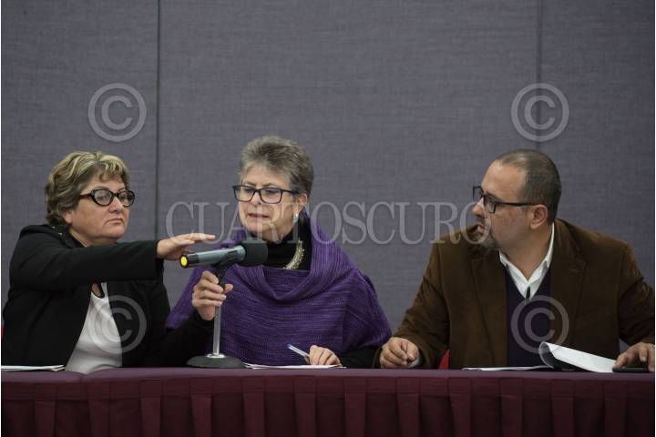 CIUDAD DE MÉXICO, 22ENERO2019.- Araceli Rodriguez madre de un policía federal desaparecido y defensora de Derechos Humanos, Mariclaire Acosta, Defensora de derechos humanos y representante del Comité de Participación Ciudadana, y Juan Carlos Gutierrez, director de I(DH)EAS, durante conferencia de prensa presentaron los puntos de solicitud al Gobierno Federal, pidiendo que se termine con los patrones de criminalidad y se deseche las medidas de “punto final” y “borrón y cuenta nueva” en casos de violaciones a los derechos humanos. Además, manifestaron su rechazo a la reciente aprobación de la Guardia Nacional. FOTO: MARIO JASSO /CUARTOSCURO.COM