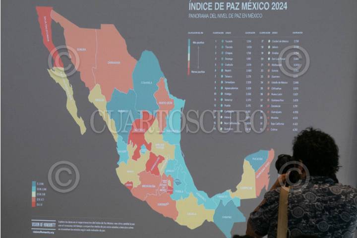 CIUDAD DE MÉXICO, 14MAYO2024.- Carlos Juárez Cruz, director del Instituto para la Economía y La Paz; durante la presentación del Índice de Paz México 2024. El informe destaca que la tasa de homicidios se disparó un 71% en ocho años. FOTO: MOISÉS PABLO/CUARTOSCURO.COM