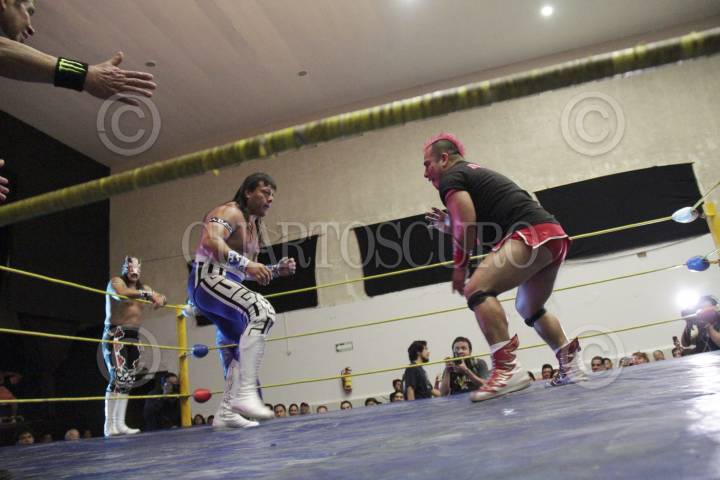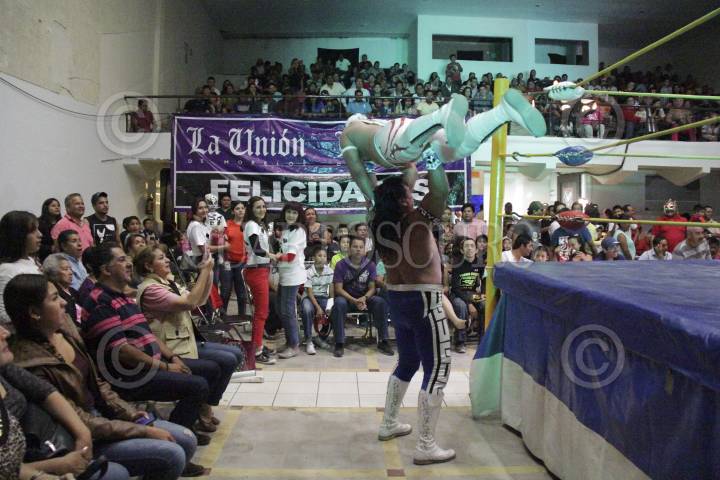 CUERNAVACA, MORELOS, 15FEBRERO2016.- En un ambiente familiar se llevó a cabo una función de lucha libre en el Centro Cultural Olympia, en el centro de la ciudad, donde se enfrentaron en el cuadrilátero estrellas como el Último Guerrero, Máximo Okomura, Edson Michel, Gran Guerrero y Magia Blanca entre otros luchadores. FOTO: PATRICIA MORALES /CUARTOSCURO.COM