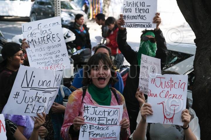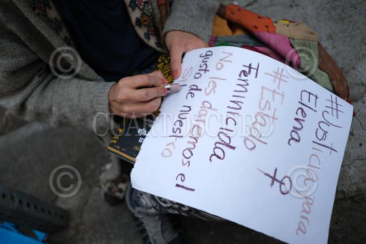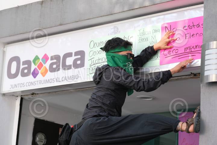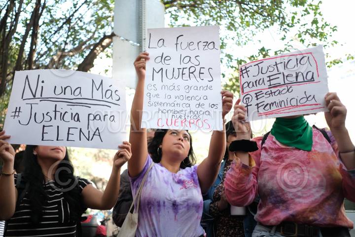 Mujeres de organizaciones feministas durante una manifestación en la que exigieron justicia por el ataque al la saxofonista mixteca María Elena Ríos.