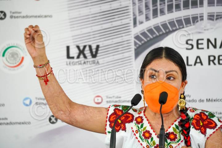 María Elena Ríos, saxofonista atacada con ácido en 2019, ofreció conferencia de prensa en la que exigió la renuncia inmediata de juez Teódulo Pacheco, quien resolvió cambiar la modalidad de prisión “preventiva” a “domiciliaria” en favor del empresario Juan Antonio Vera Carrizal, presunto autor intelectual de dicha agresión. María Elena estuvo acompaña por la activista Olimpia Coral, y diputadas del PRD; PRI y PAN.