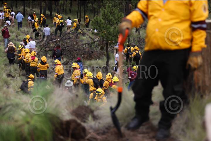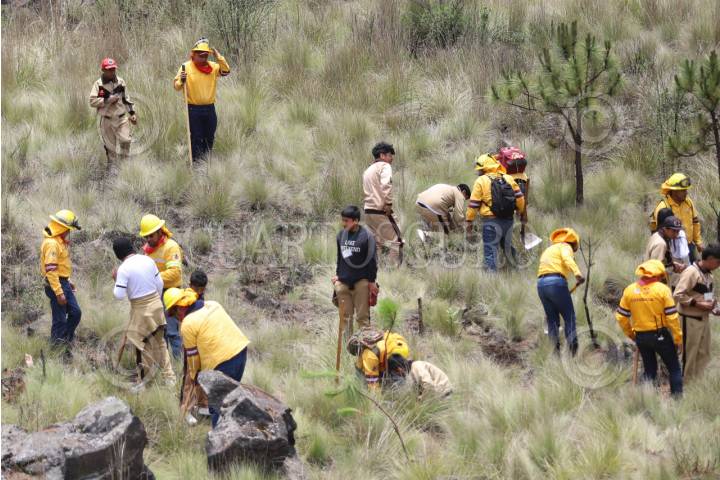 ALMOLOYA DE JUÁREZ, ESTADO DE MÉXICO, 07SEPTIEMBRE2025.- Vecinas y vecinos de Almoloya de Juárez, asociaciones civiles y trabajadores del ayuntamiento llevaron a cabo una jornada de reforestación en el Ejido San Isidro El Reservado, sembrando alrededor de 4 especies de pino ayacahuite, ocarpa y patula, con el objetivo de recuperar zonas erosionada y conservar espacios forestales, así como incrementar el número de árboles en la región. FOTO: CRISANTA ESPINOSA AGUILAR/CUARTOSCURO.COM