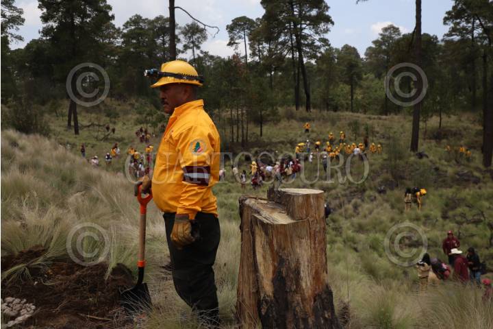 CIUDAD DE MÉXICO, 05JUNIO2025.- Trabajadores de CORENADR comienzan los trabajos de reforestación en La Cima, como parte de las actividades del Día Mundial del Medio Ambiente. FOTO: DANIEL AUGUSTO/ CUARTOSCURO.COM