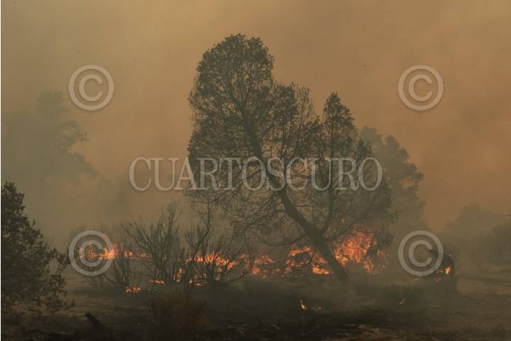 TECATE, BAJA CALIFORNIA, 29JUNIO2025.-Árboles incendiados en ejido Gustavo Auvanel Vallejo. Desde el 16 de junio, incendios forestales en Tecate han arrasado más de 12 mil hectáreas, destruyendo viviendas y afectando la flora, fauna y calidad del aire. Con un 70?control, el fuego sigue activo en zonas como La Rumorosa, donde se mantiene la prealerta de evacuación. Más de 200 elementos de emergencia trabajan en la contención. FOTO KAREN CASTAÑEDA/CUARTOSCURO.COM
