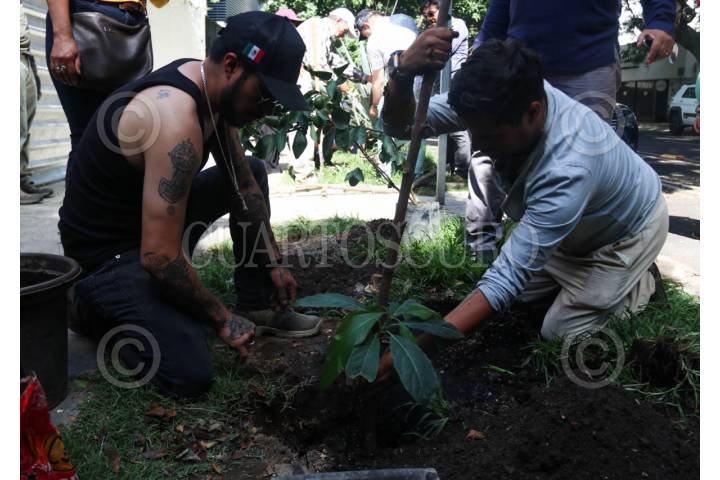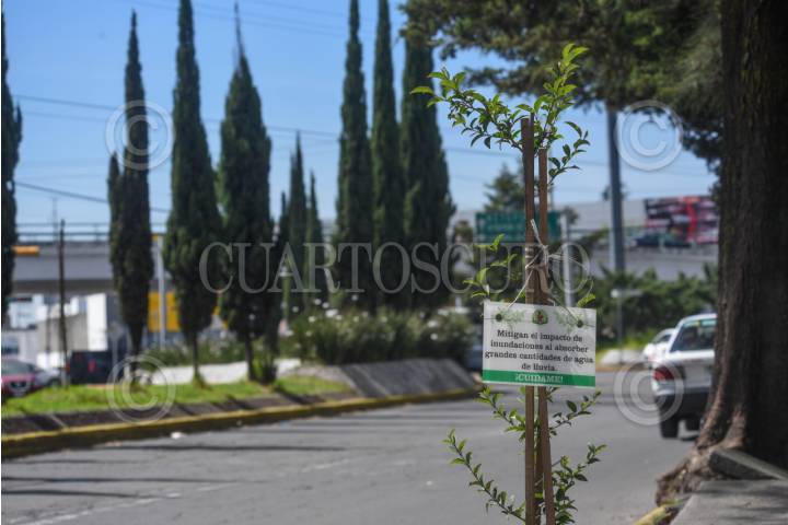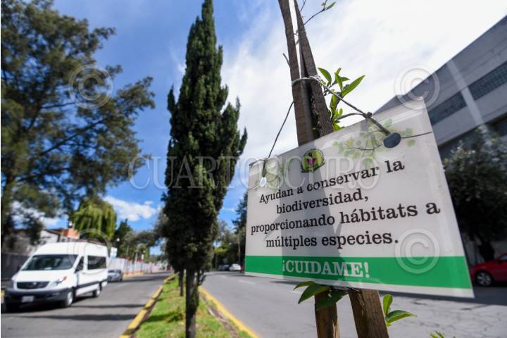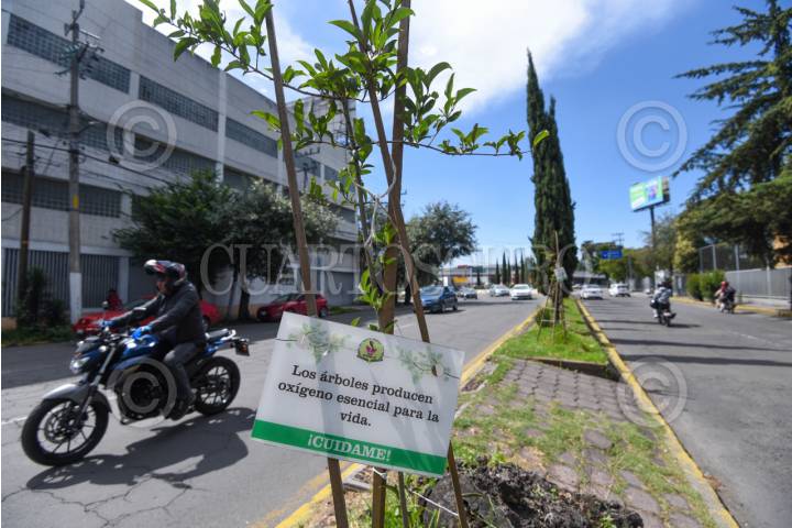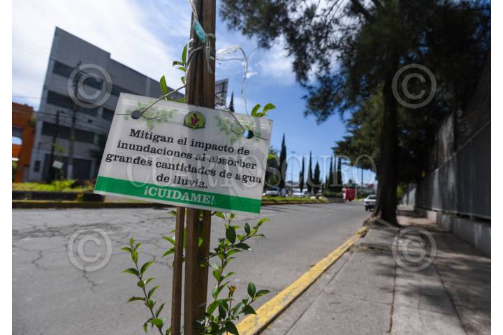 TOLUCA, ESTADO DE MÉXICO, 31JULIO2025.- Como una forma de contribuir al cuidado del medio ambiente fueron plantados algunos árboles en los camellones y banquetas avenida Pino Suárez, la zona de la Escuela Preparatoria Oficial Anexa a la Normal Núm. 3 de Toluca, también fueron instalados letreros con algunas frases que buscan hacer reflexionar a los ciudadanos sobre el cuidado de los mismos, para garantizar el crecimiento de las especies de la zona y también de otros espacios verdes en la ciudad de Toluca. FOTO: CRISANTA ESPINOSA AGUILAR /CUARTOSCURO.COM