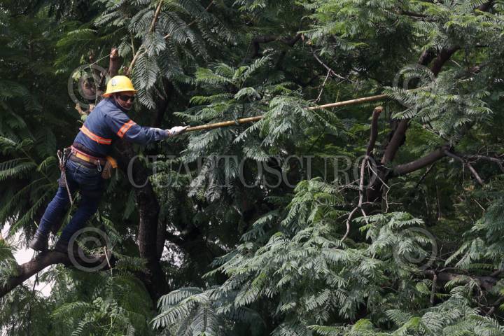 CIUDAD DE MÉXICO, 03SEPTIEMBRE2025.- Un trabajador del gobierno capitalino realiza una poda de árboles en avenida Álvaro Obregón, en la colonia Roma. FOTO: MOISÉS PABLO/CUARTOSCURO.COM