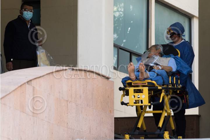 Un hombre intubado es ingresado al triage respiratorio del Centro Médico Siglo XXI.