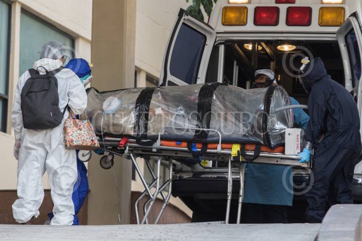 Una persona con síntomas de Covid-19 fue trasladada en cápsula al Triage Respiratorio del Centro Médico Siglo XXI.