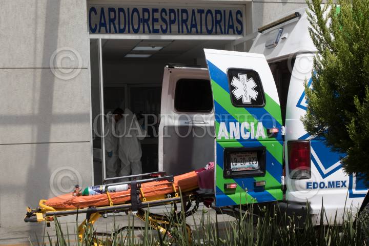 Paramédicos ingresan a un paciente con síntomas de Covid-19 al Triage Respiratorio del Centro Médico Siglo XXI.