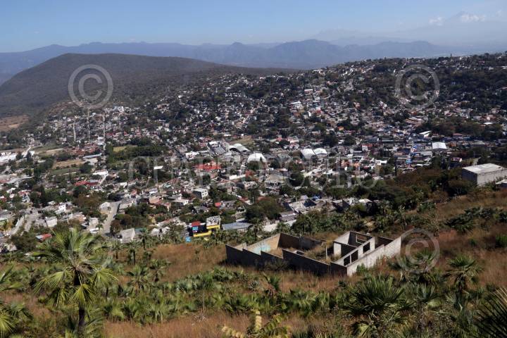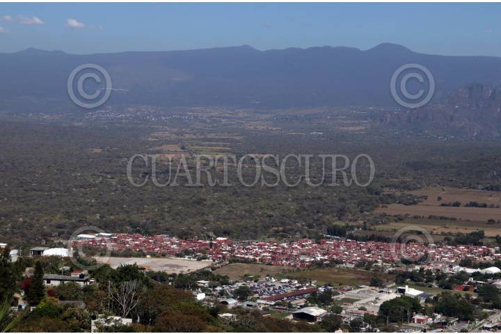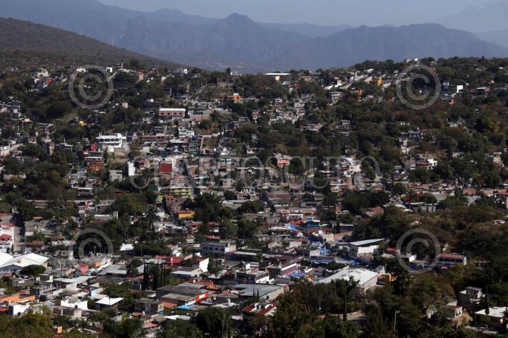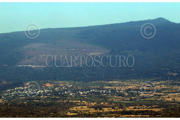 Un malpaís en la sierra de Chichinautzin se observa desde el municipio de Jiutepec. Esta marca en la serranía se debe a un derrame de lava del volcán Chichinautzin hace mas de dos mil años.
