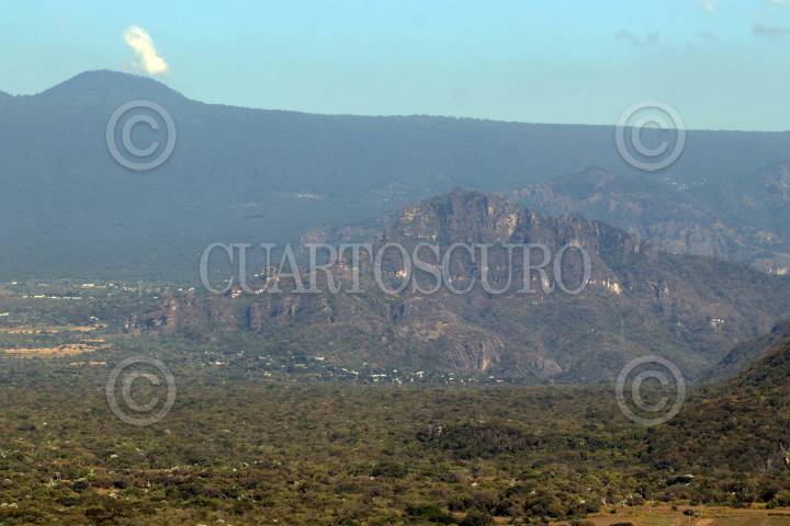 La serrania de Tepoztlán vista desde la elevacion del cerro de la Corona, en Jiutepec.