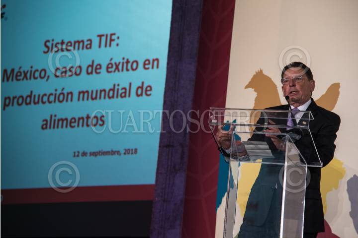 CIUDAD DE MÉXICO, 12SEPTIEMBRE2018.- Mario Gorena Mireles, presidente de la ANETIF, durante su participación en el foro Sistema TIF: México, caso de éxito en producción mundial de alimentos, llevado a cabo en el Museo Interactivo de Economía. FOTO: MARIO JASSO /CUARTOSCURO.COM