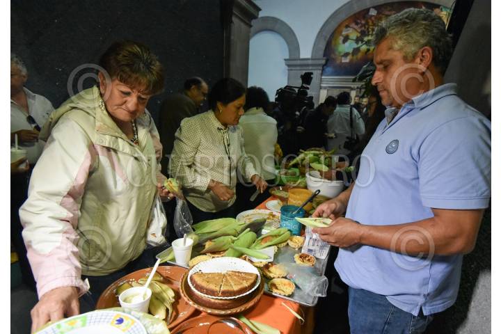 TOLUCA, ESTADO DE MÉXICO, 01AGOSTO2019.- El diputado Maurilio Hernández presidente de la Junta de Coordinación Política acompañado de autoridades municipales de Cocotitlán anunciaron la 34 Feria del Elote que se llevará a cabo del 10 de agosto al 8 de abril; durante el anuncio se realizó una degustación de diversos productos elaborados con elote como esquites, chile atole, helado de elote, pan, entre otros. FOTO: CRISANTA ESPINOSA AGUILAR /CUARTOSCURO.COM